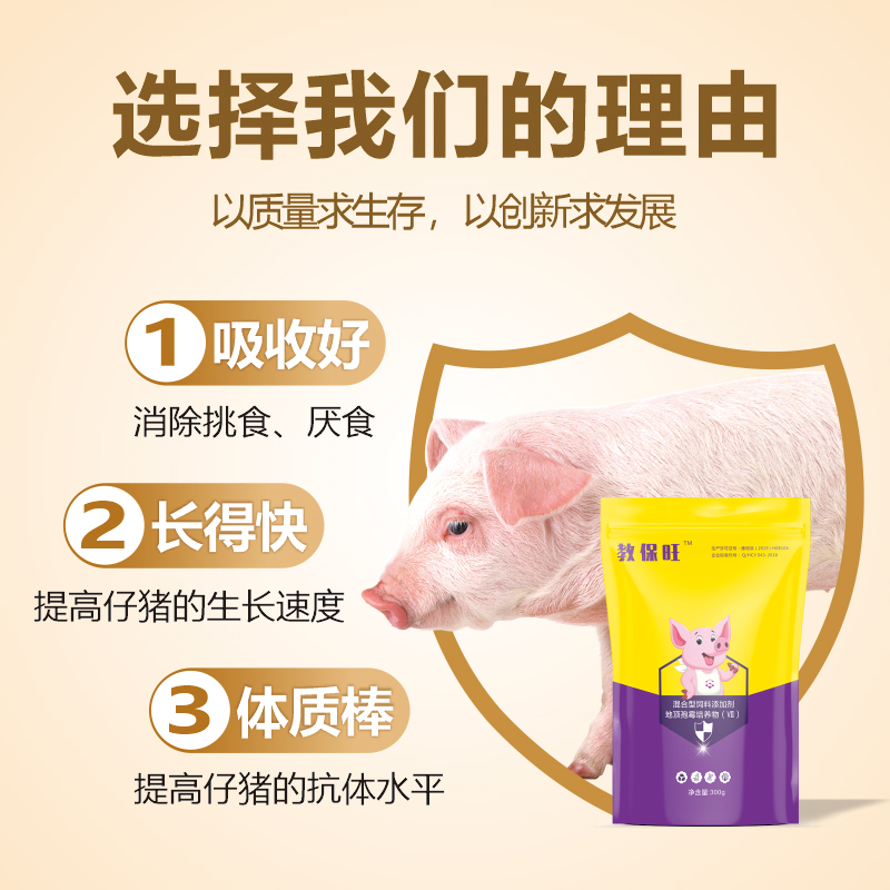 2、保育期:仔豬斷奶后使用,減少仔豬斷奶應(yīng)激引起的腹瀉、生長緩慢等問題,提高保育仔豬的生長速度。
